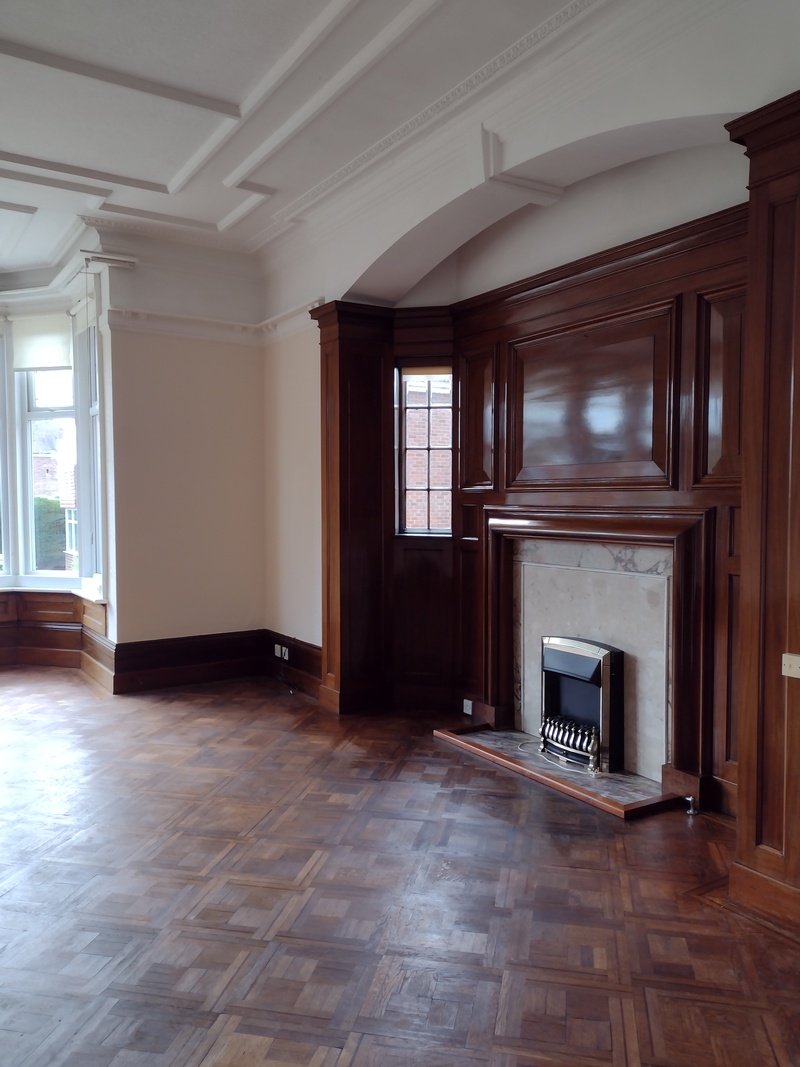 On walking in you see the original solid mahogany fire surround panelling extending into the bay area and deep mahogany skirting's.